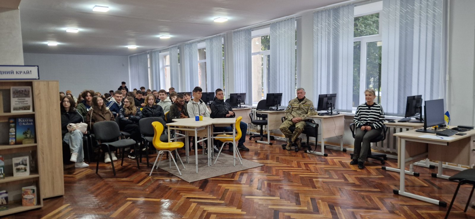 5 Жовтня, 2025У вівторок, 30 вересня 2025 року, у Всеукраїнський день бібліотек, у приміщенні Медіатеки Калуського політехнічного фахового коледжу відбулася відкрита виховна година для здобувачів освіти коледжу під символічною назвою «Вартові свободи: сила і мужність захисників України», присвячена Дню захисника і захисниць України.